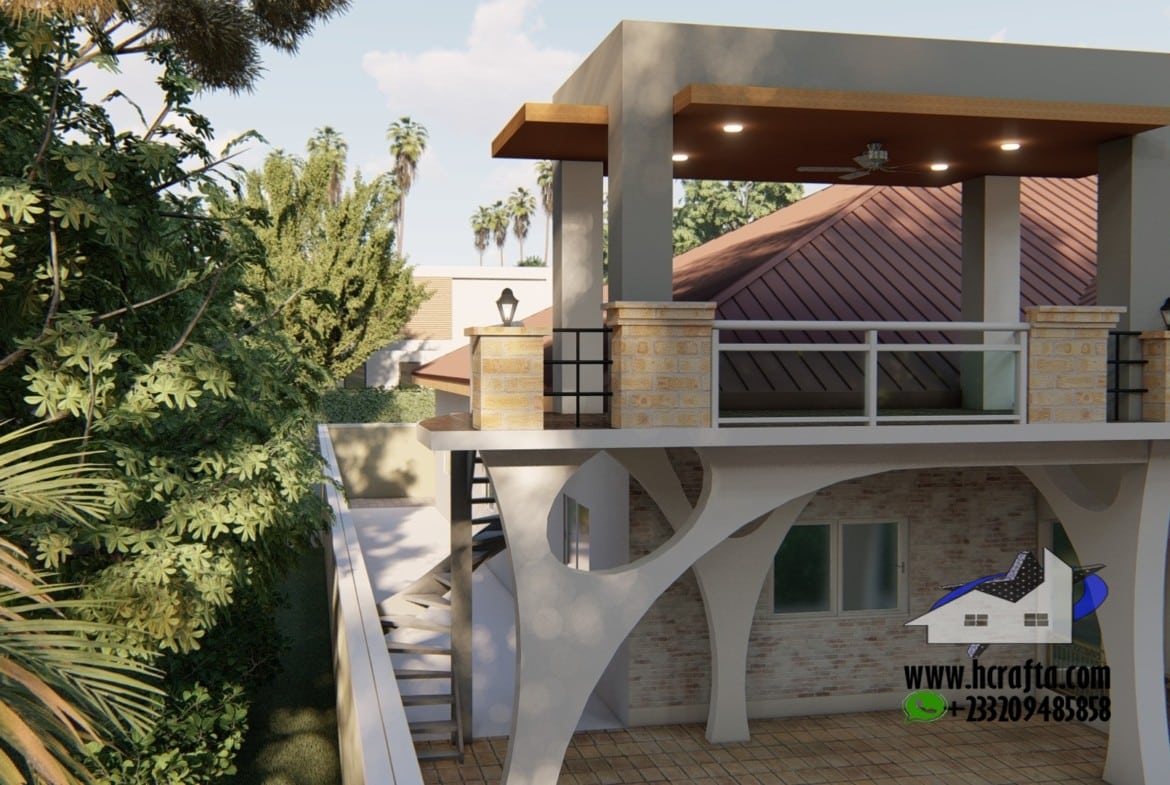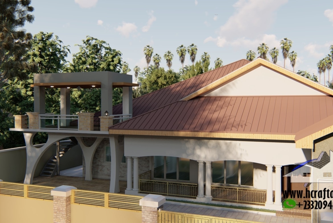 5 Bedroom bungalow is designed for you and your growing family, showcase summer hut idea a tropical Ghanaian home your family will love. With a driveway which leads to an attached garage