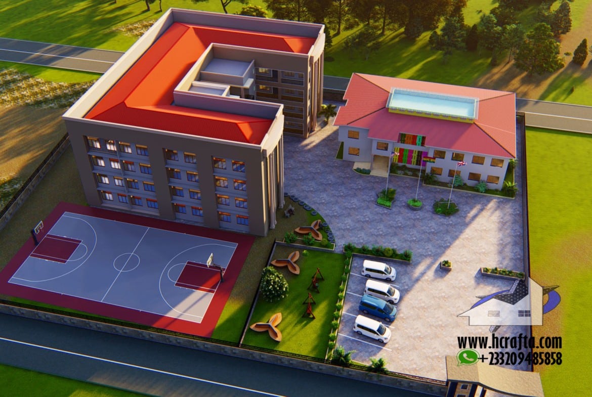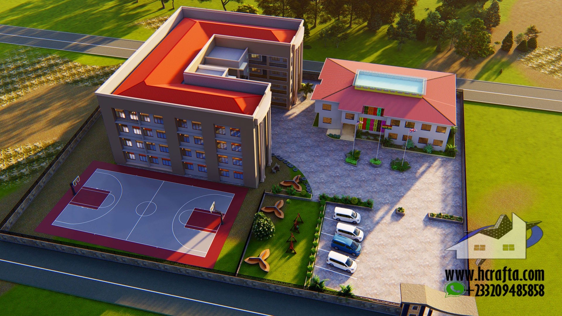 This U-shaped school block offers a spacious twenty-four classroom, three storage, library, computer lab, science lab offices and ramp for the wheelchair users to have easy access to the upper floor. The ample windows ensures plenty of natural light and fresh air into the rooms
